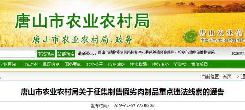 唐山市农业局向社会公开征集制售假劣肉制品违法线索通
