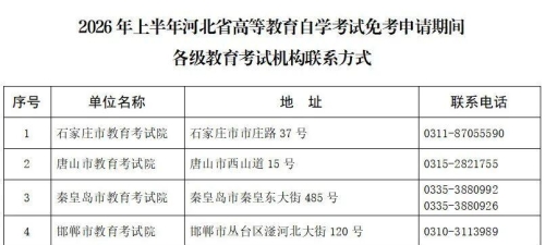 河北省高等教育自学考试免考申请公告